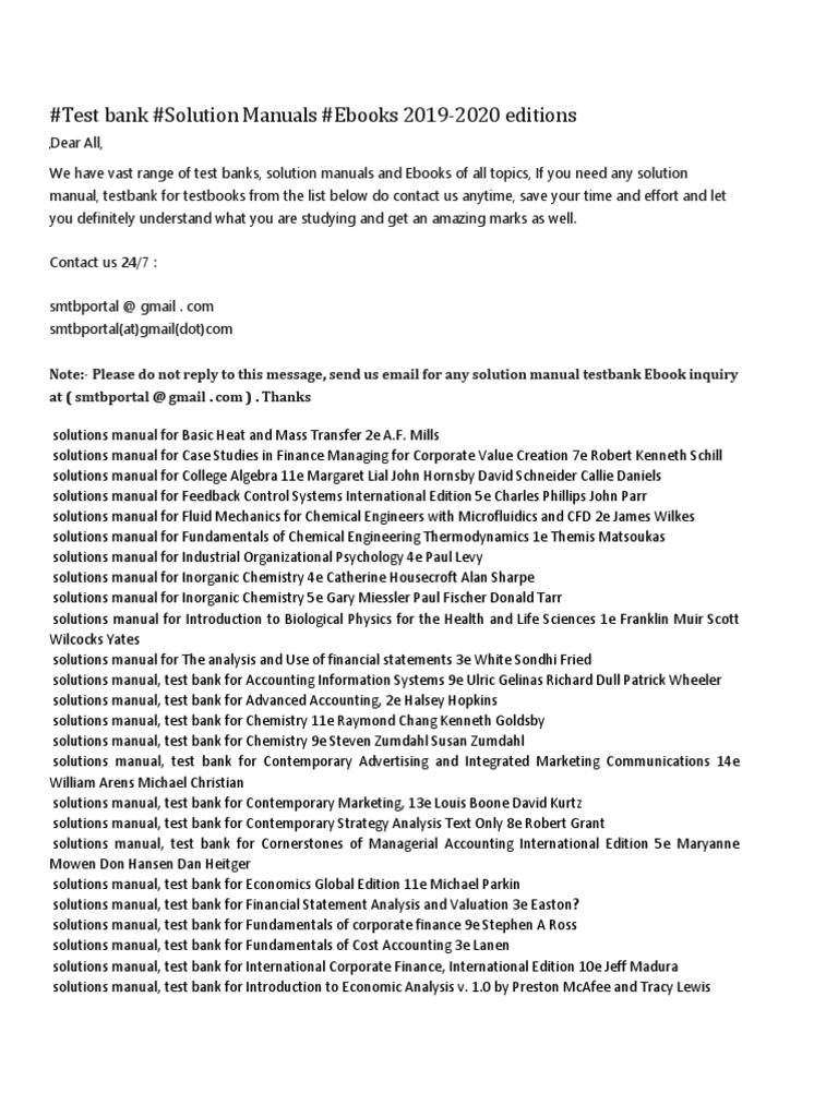 - Pdf Full List Test Bank And Solution Manual 2020 2021 Student Saver Team Best Copy Adam S Morgan Academia Edu , Paperback, 3Rd Edition, 248 Pages.